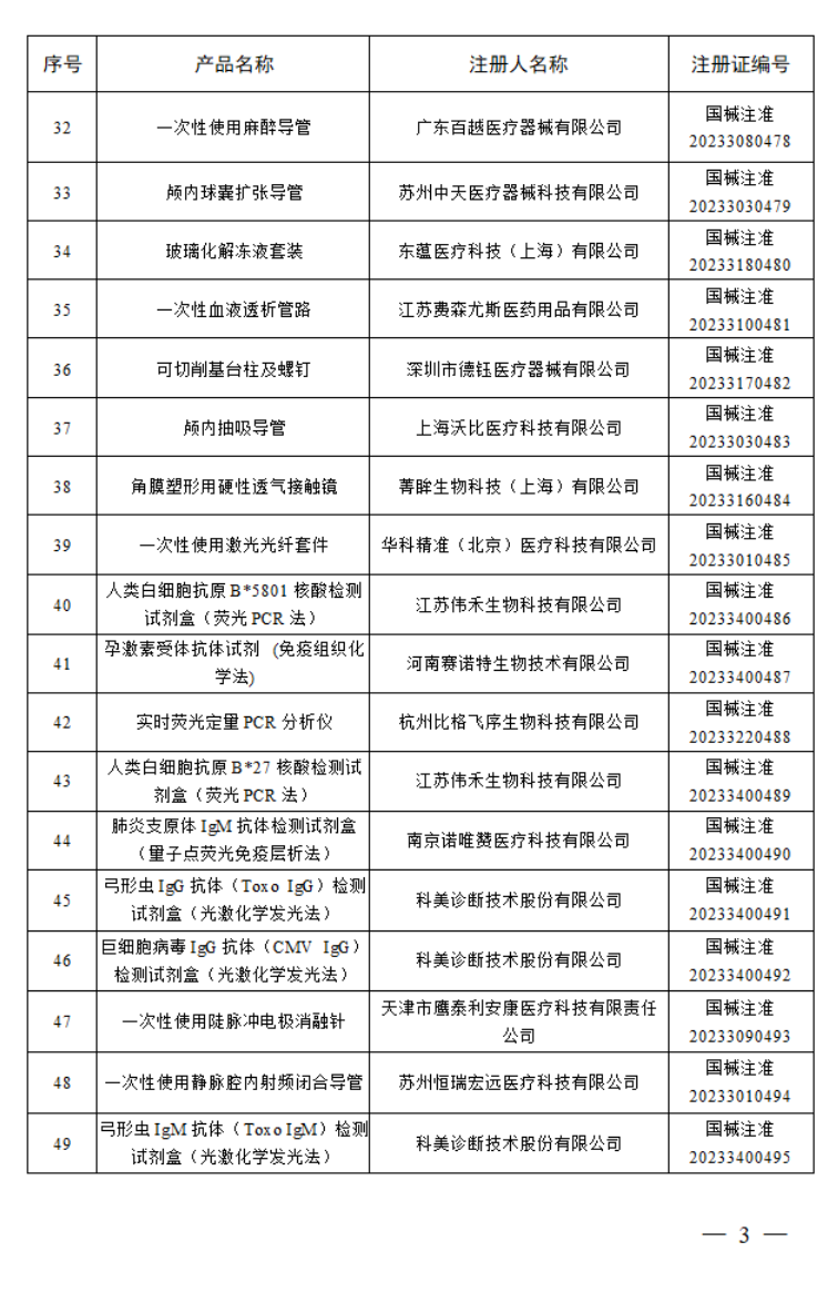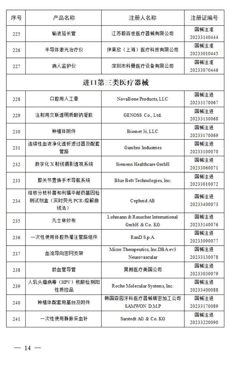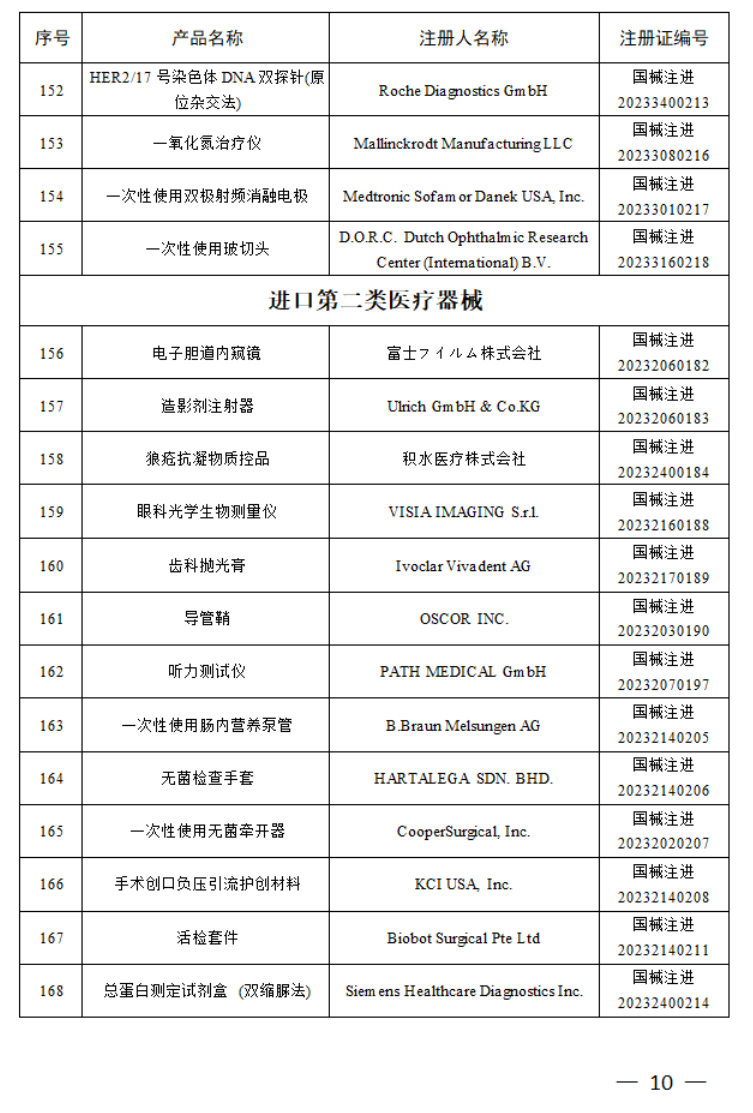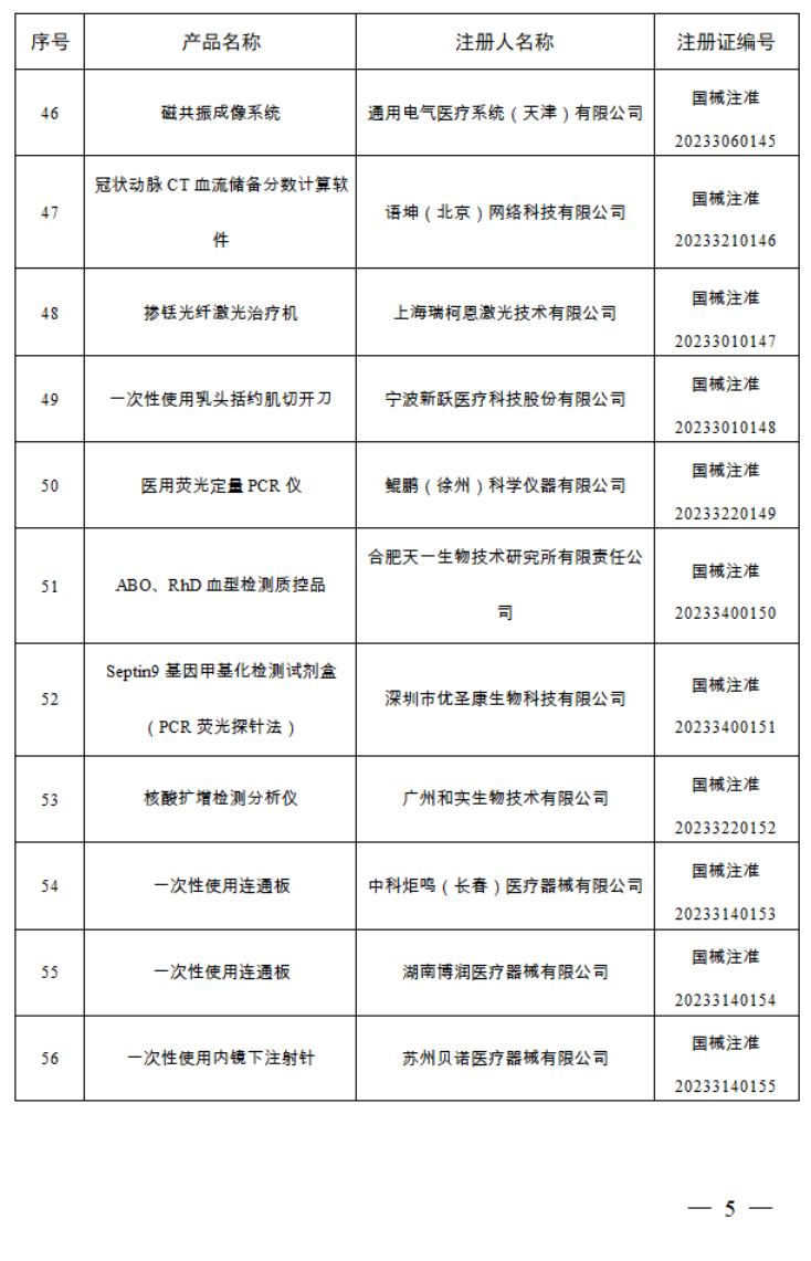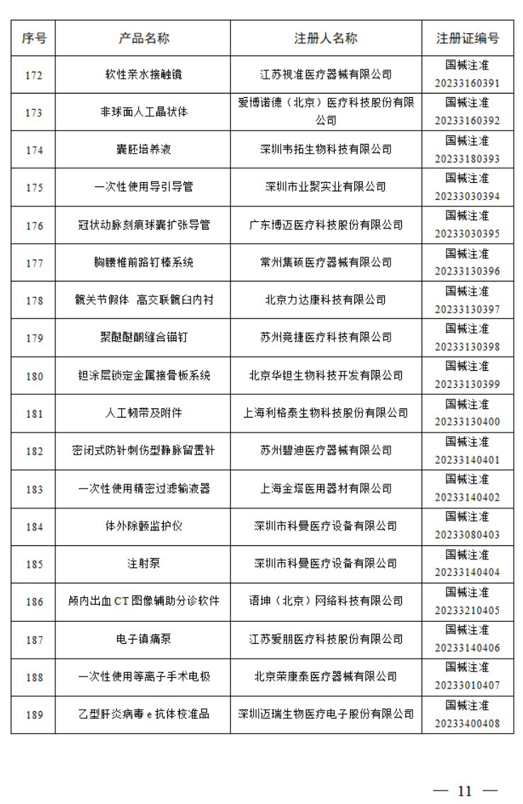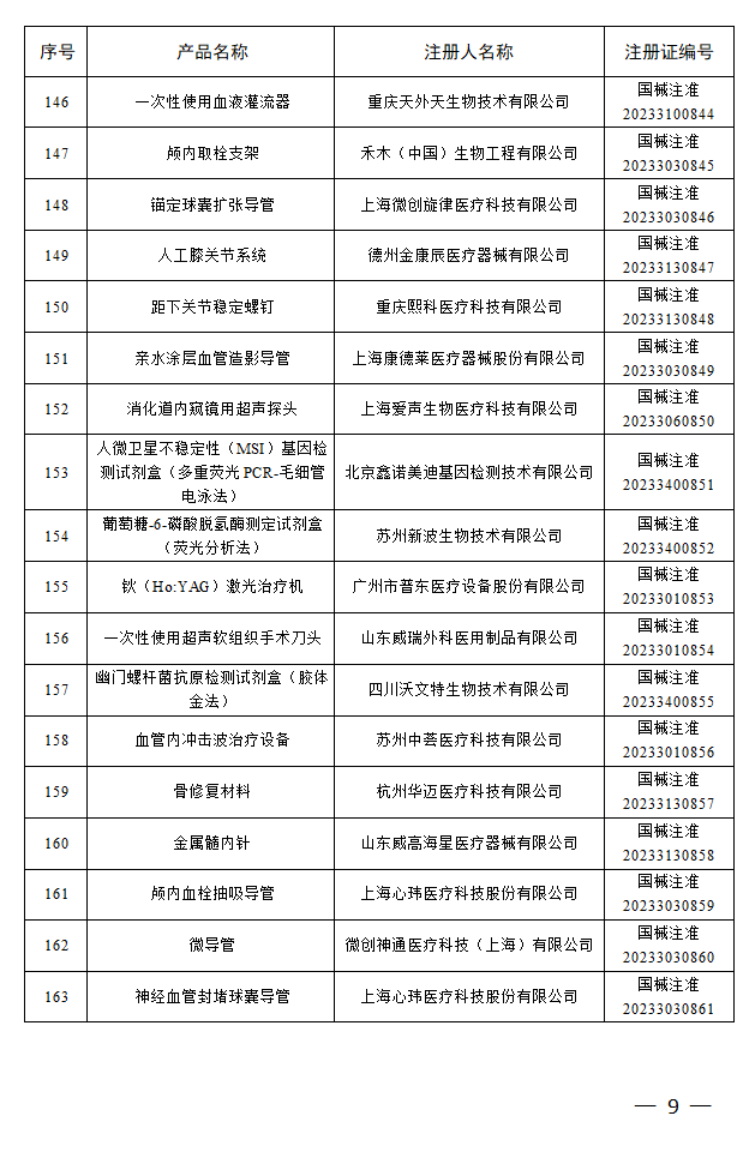 2023年5月,国家药监局共批准注册医疗器械产品175个。其中,境内第三类医疗器械产品128个,进口第三类医疗器械产品27个,进口第二类医疗器械产品20个。