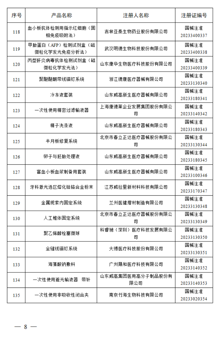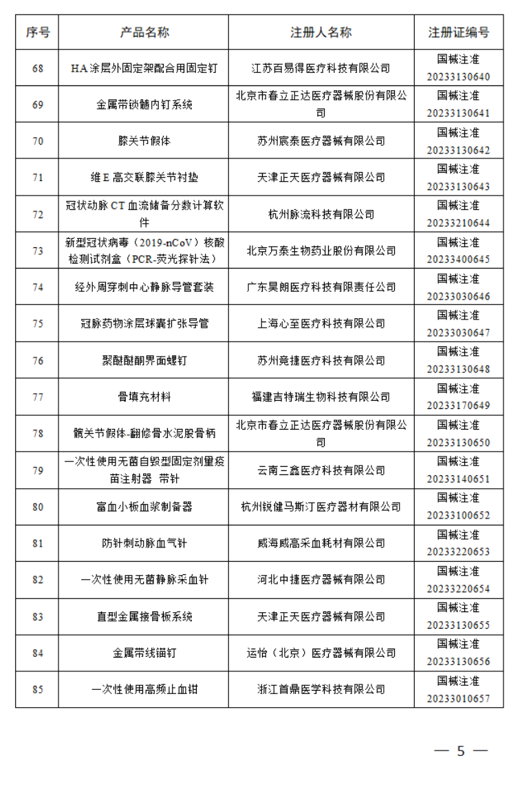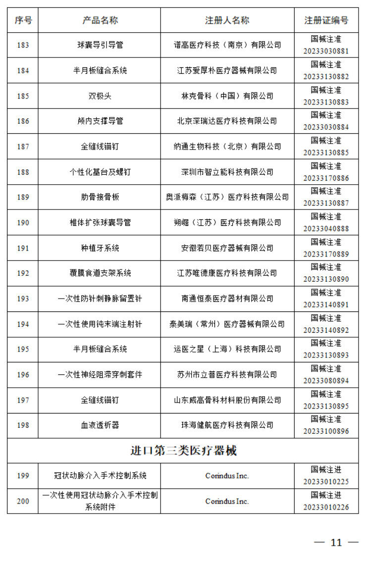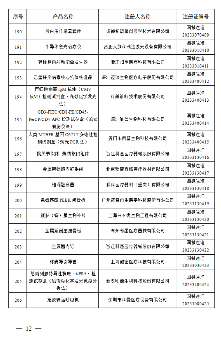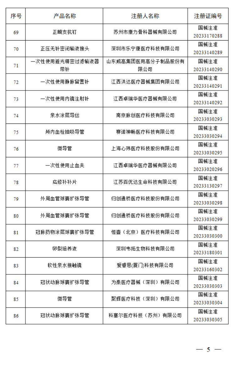 2023年5月,国家药监局共批准注册医疗器械产品175个。其中,境内第三类医疗器械产品128个,进口第三类医疗器械产品27个,进口第二类医疗器械产品20个。