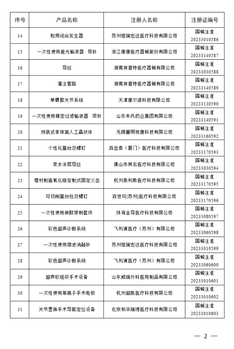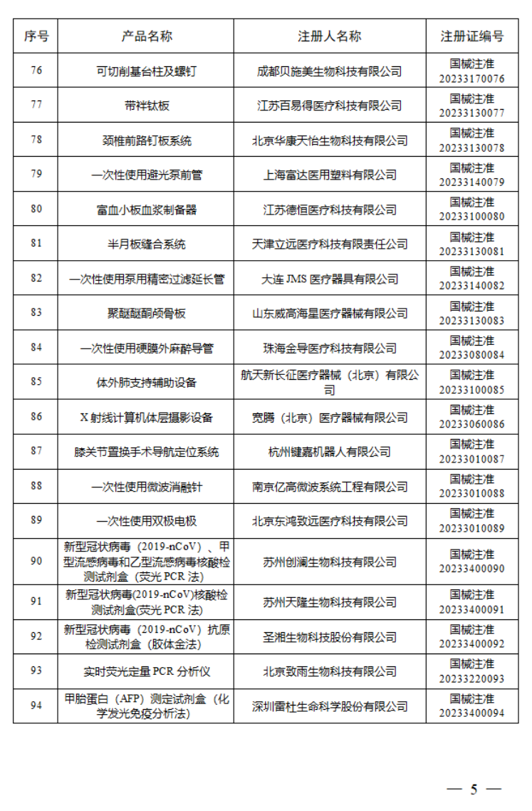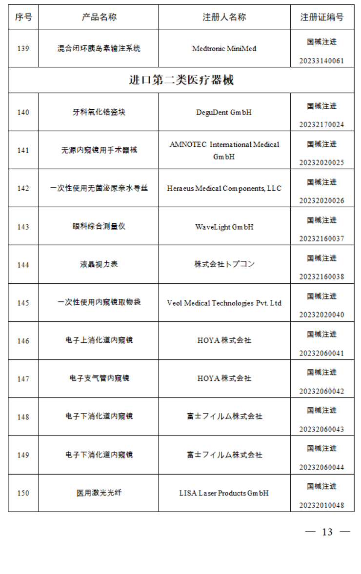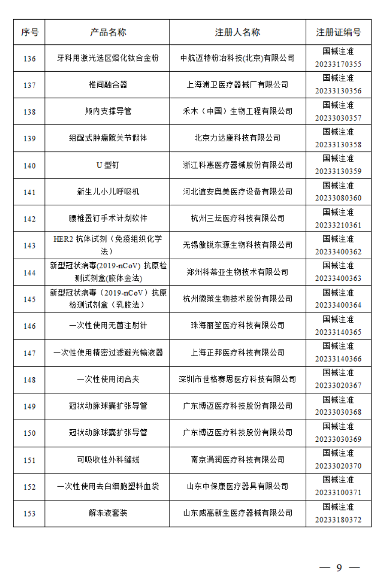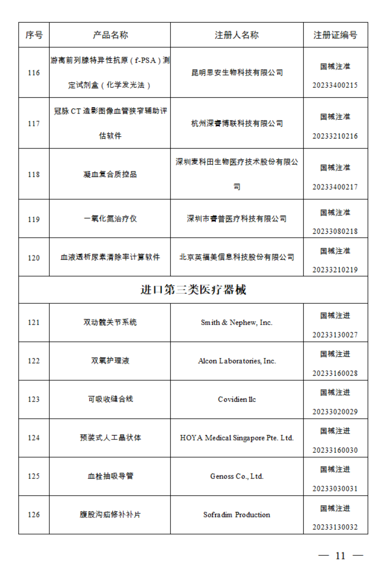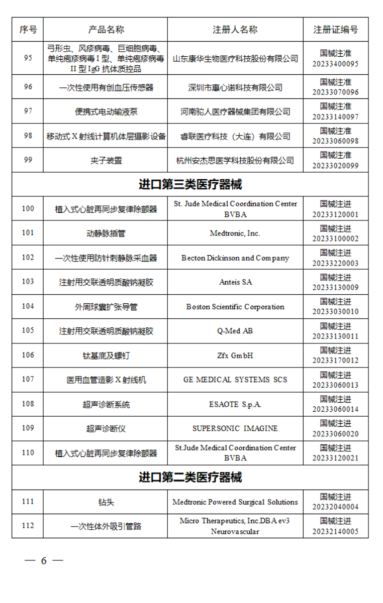 2023年5月,国家药监局共批准注册医疗器械产品175个。其中,境内第三类医疗器械产品128个,进口第三类医疗器械产品27个,进口第二类医疗器械产品20个。