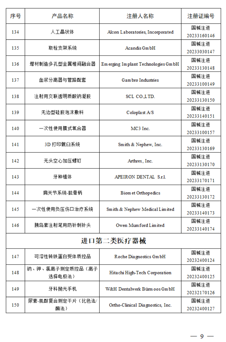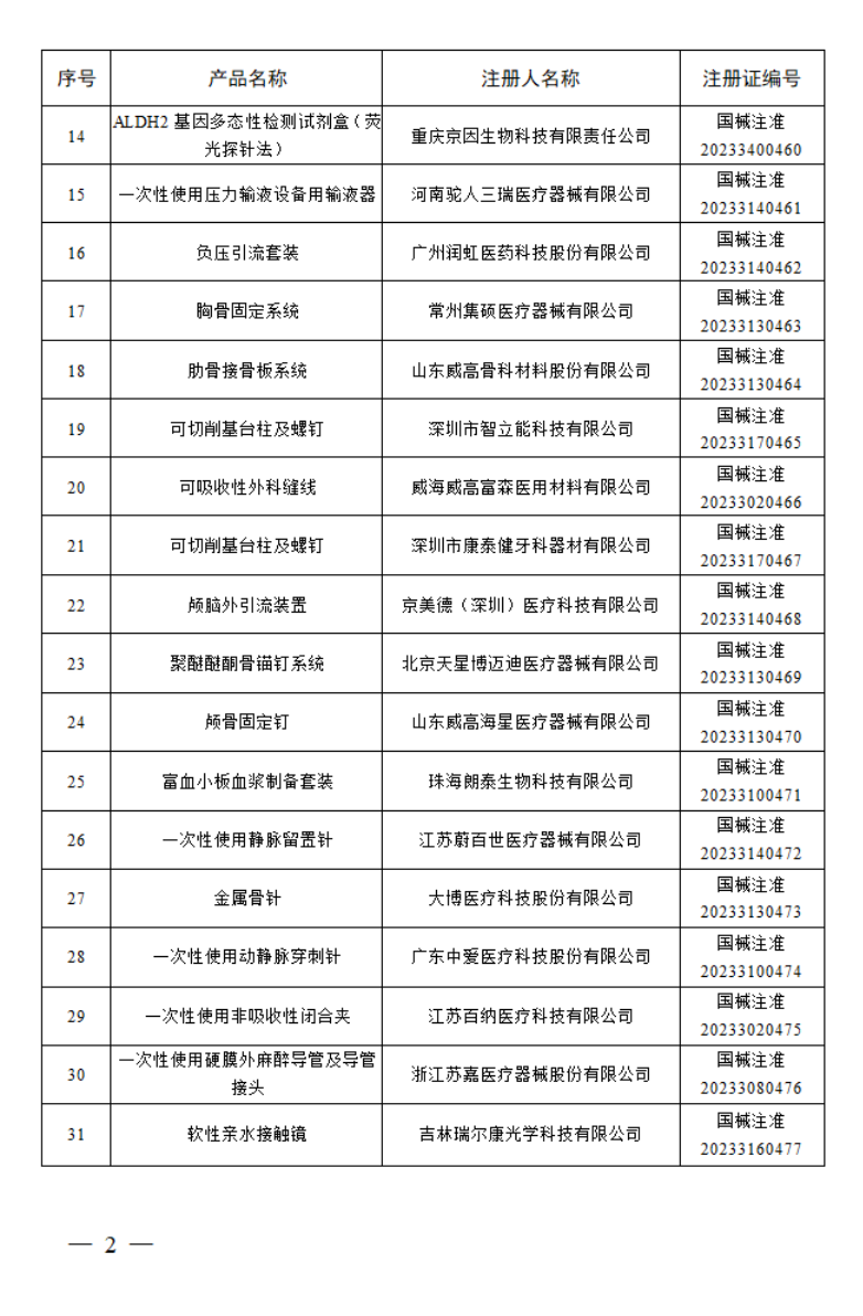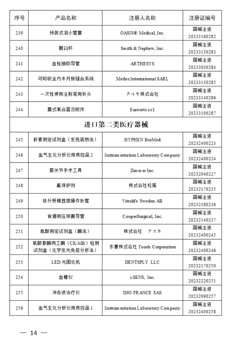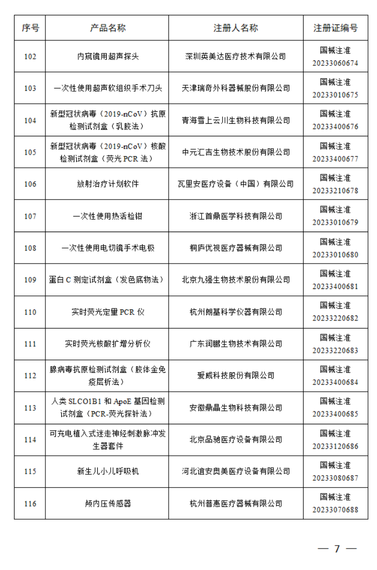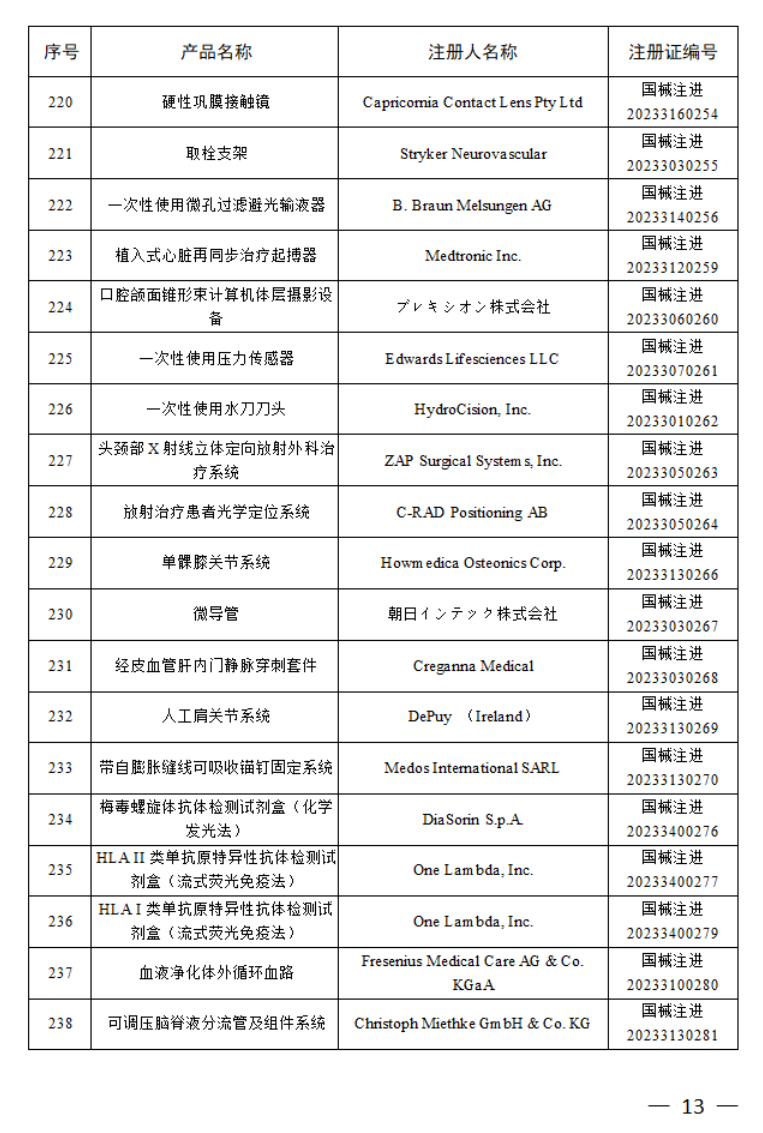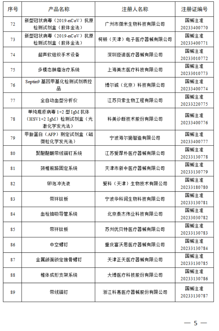 2023年5月,国家药监局共批准注册医疗器械产品175个。其中,境内第三类医疗器械产品128个,进口第三类医疗器械产品27个,进口第二类医疗器械产品20个。