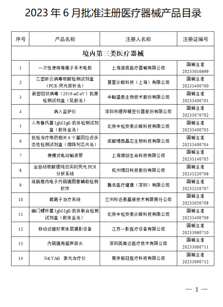 据统计,今年1-7月,国家药监局共批准注册医疗器械产品1392个。批准注册医疗器械产品目录如下: