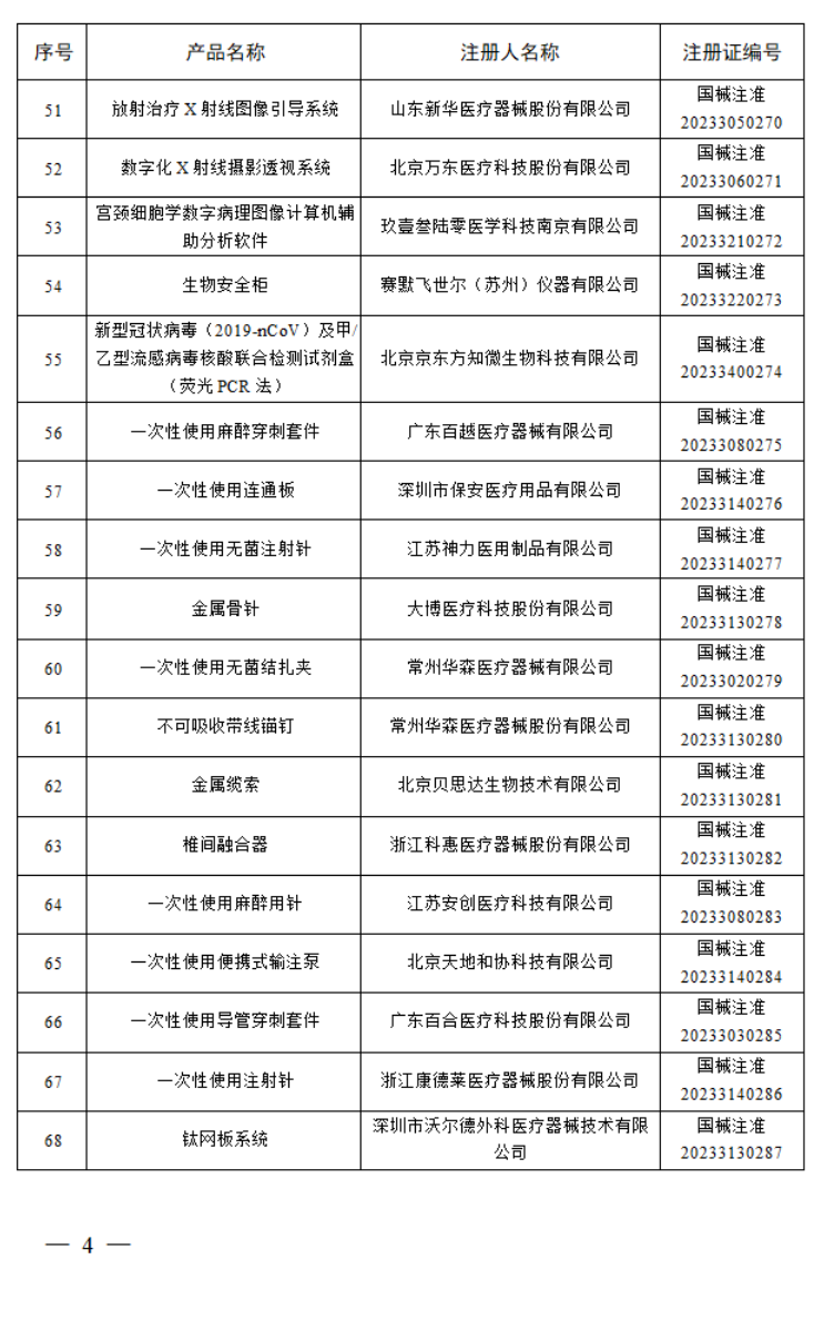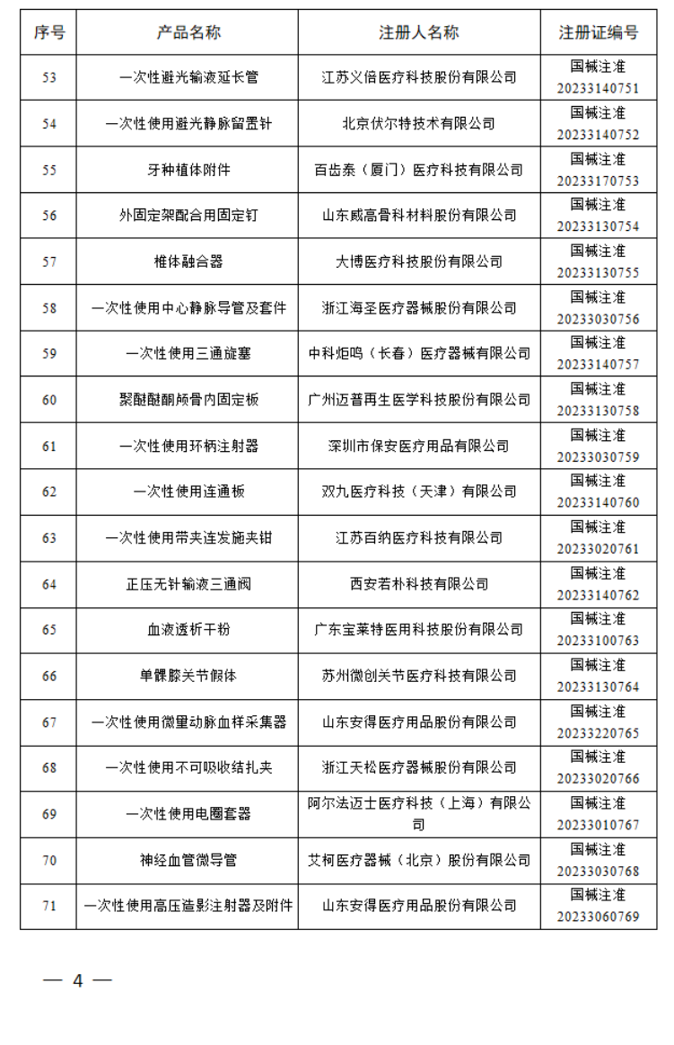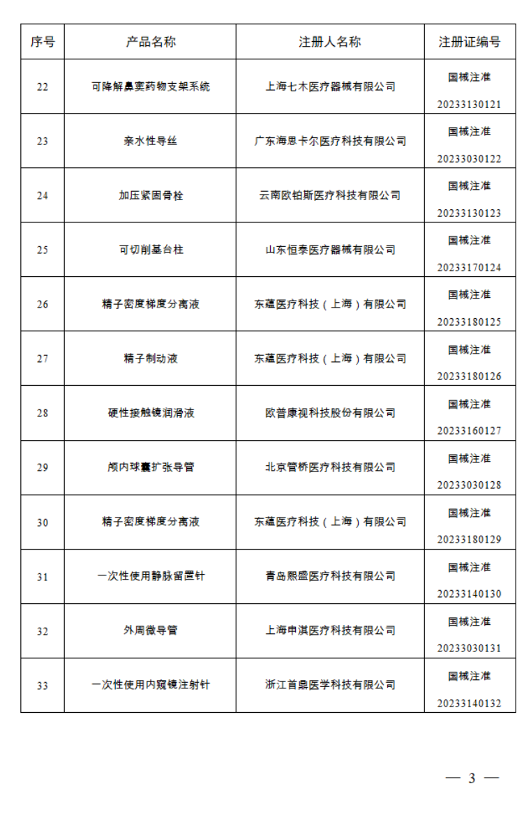 2023年3月,国家药监局共批准注册医疗器械产品290个。其中,境内第三类医疗器械产品227个,进口第三类医疗器械产品33个,进口第二类医疗器械产品26个,港澳台医疗器械产品4个。