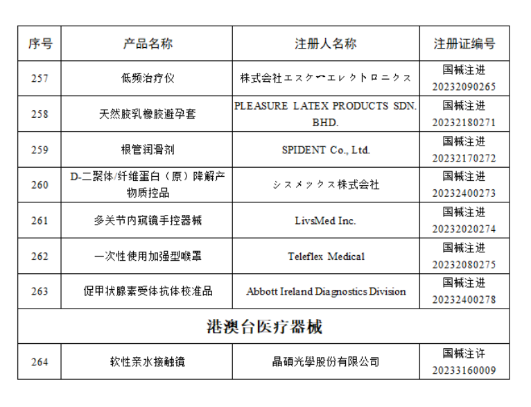 2023年6月,国家药监局共批准注册医疗器械产品264个。其中,境内第三类医疗器械产品198个,进口第三类医疗器械产品46个,进口第二类医疗器械产品19个,港澳台医疗器械产品1个。