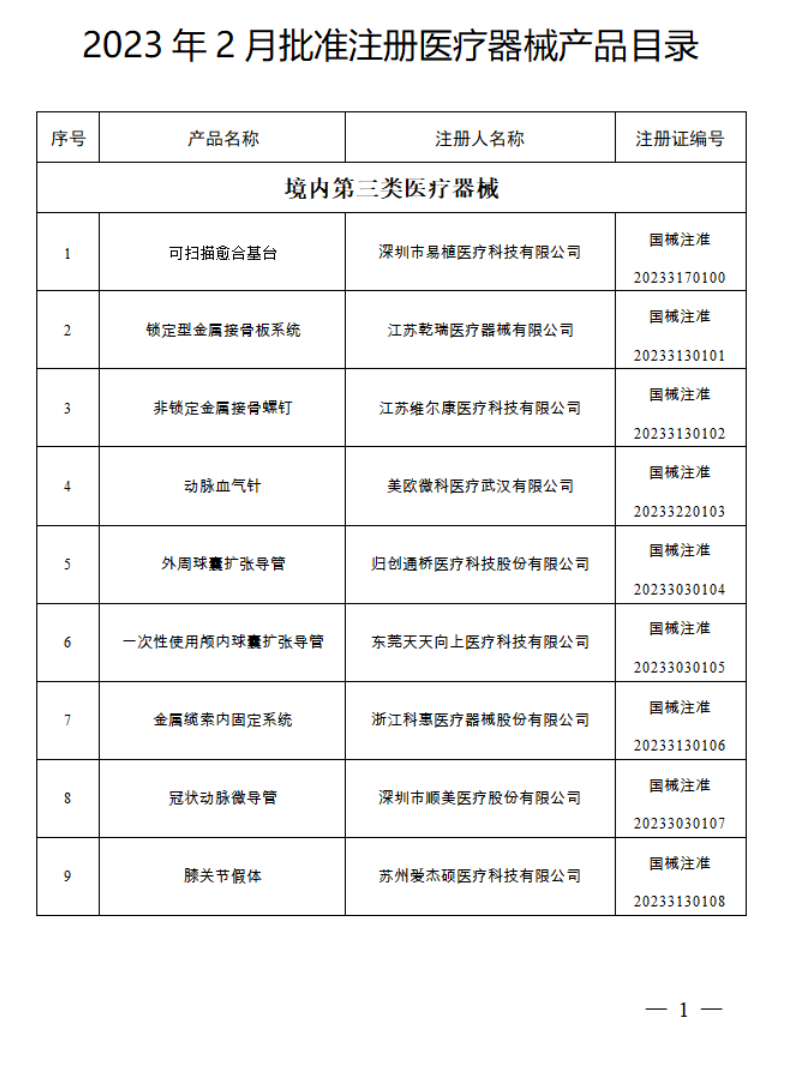 2023年2月,国家药监局共批准注册医疗器械产品162个。其中,境内第三类医疗器械产品120个,进口第三类医疗器械产品19个,进口第二类医疗器械产品22个,港澳台医疗器械产品1个。