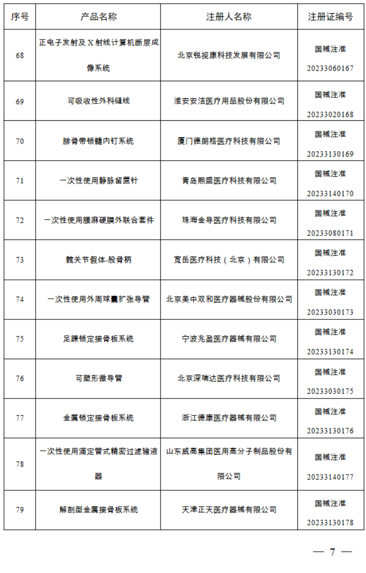 2023年7月,国家药监局共批准注册医疗器械产品197个。其中,境内第三类医疗器械产品150个,进口第三类医疗器械产品21个,进口第二类医疗器械产品21个,港澳台医疗器械产品5个。